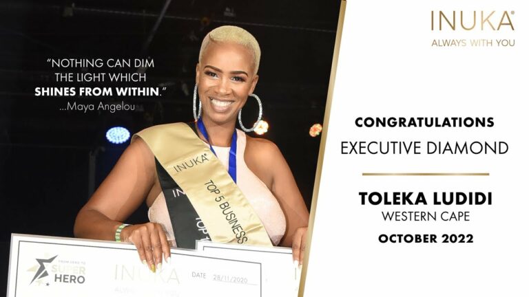 A joyous Celebration Evening to Toleka Ludidi, our new INUKA Executive Diamond Leader! As part of the INUKA Compensation Plan, Toleka already received her R100,000.00 Executive Diamond Leader Cash Cheque.